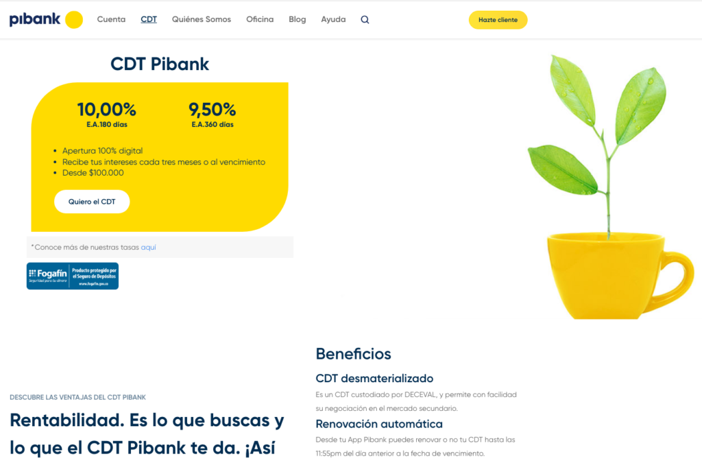 • Esta información corresponde a lo publicado por la página de https://www.pibank.co/cdt-pibank/